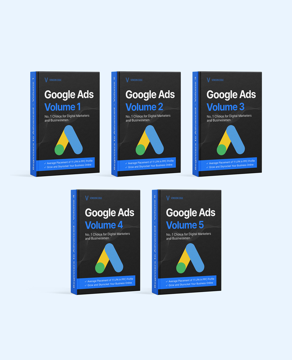 Vinson Edge provides the best google ads course in 5 volumes which is super easy to read and apply. Along with the volumes, we give live support service to clear all doubts among its readers. We also offer a Vinson Edge Google Ads certification programme. We managed to achieve 4.9 ratings among 22,034 individuals across India, USA, Canada, UAE and Australia. Our vision is to make individuals skill ready.